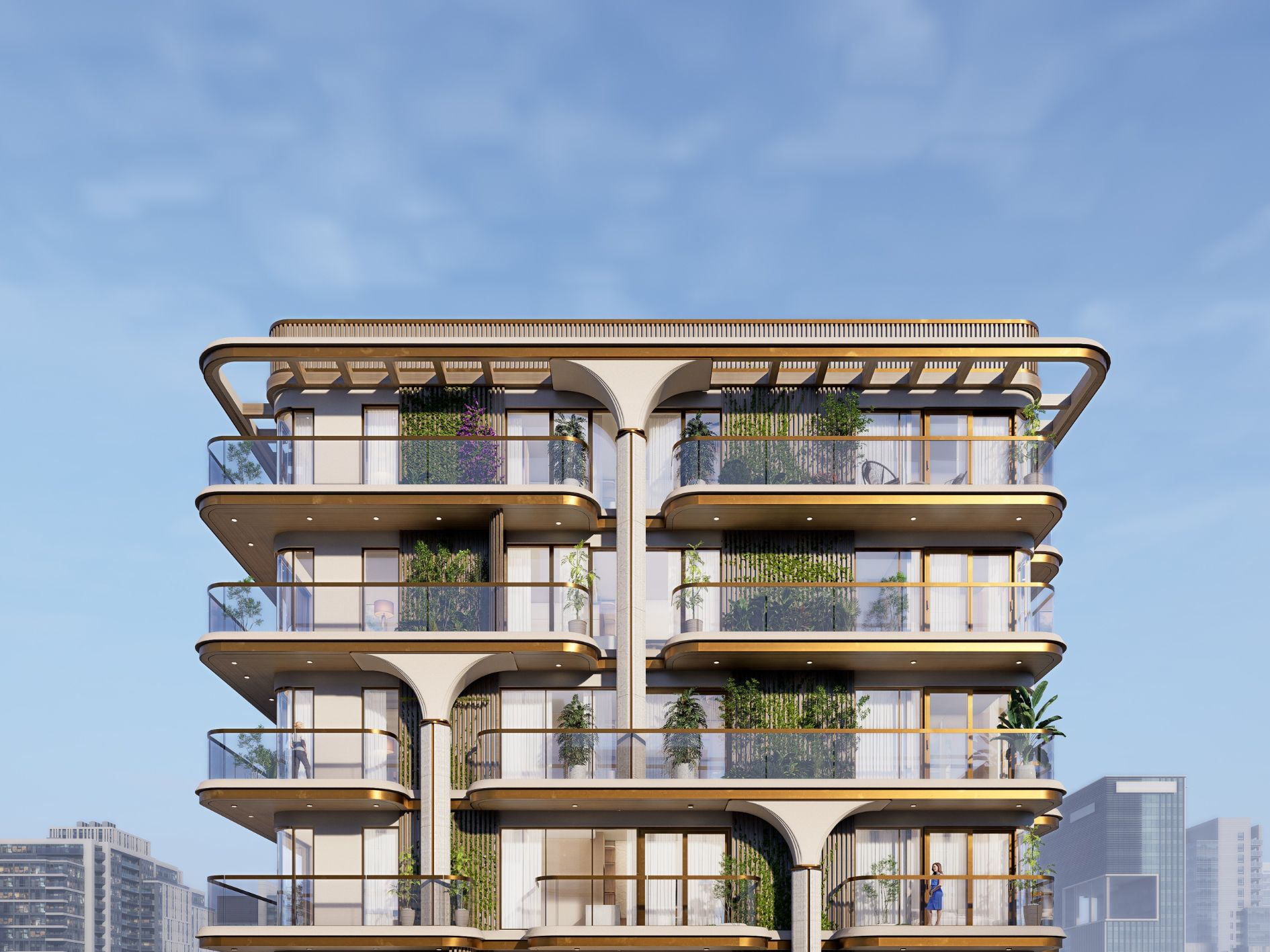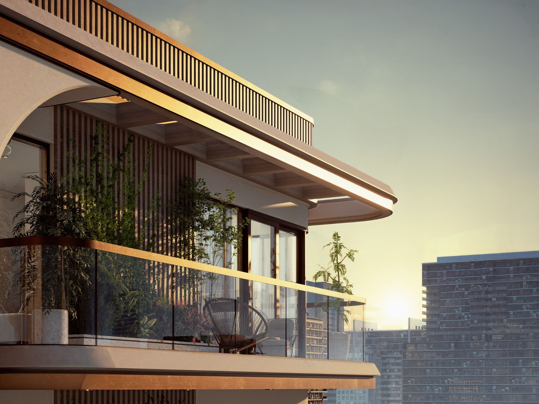 The structure harmonises beautifully with the surrounding landscape, offering park views and a sense of exclusivity.